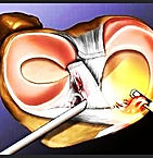 La artroscopía consiste en introducir en una articulación un pequeño tubo rígido, el artroscopio, conectado a una cámara que va a permitir al cirujano visualizar la región intraarticular en un monitor.El cirujano hace otras incisiones para introducir los mini instrumentos que va a utilizar: pinzas, tijeras, fresas. Entre las operaciones corrientes, se puede seccionar el menisco o retirarlo, reforzar ligamentos lesionados, reorganizar el cartílago dañado o eliminar un cuerpo extraño. La intervención es rápida y el paciente se recupera rápidamente después de veinticuatro horas de inmovilización. . La artroscopia permite ver la articulación, efectuar extirpaciones o realizar pequeñas cirugías. El artroscopio puede ser equipado con distintas herramientas, de tal forma que sin necesidad de una operación invasiva, se puedan realizar correcciones en la articulación.